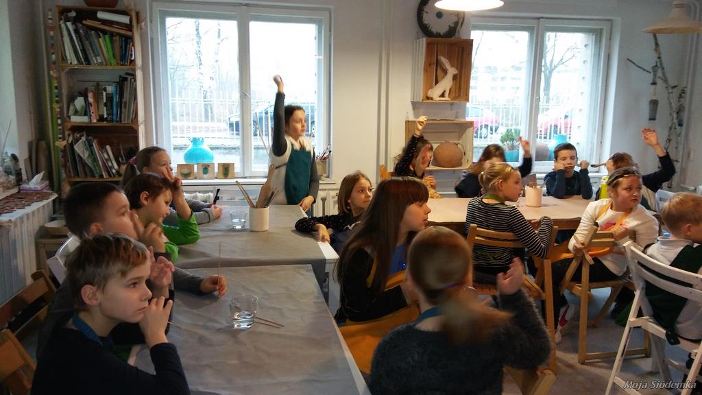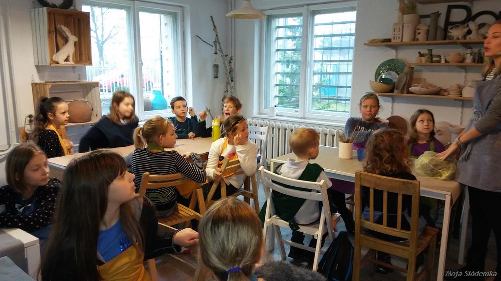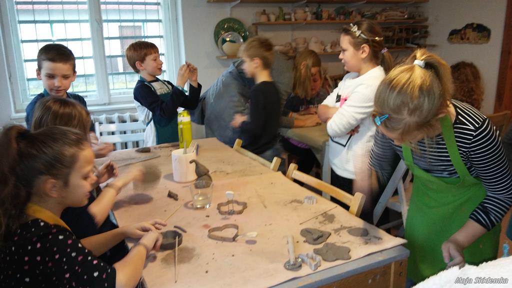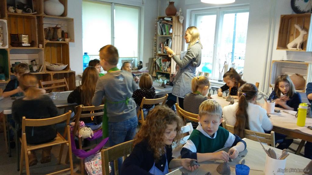 9 grudnia nasza klasa odwiedziła niezwykłe miejsce – pracownię ceramiczną Gliniana Kula. Podczas zajęć warsztatowych zapoznaliśmy się z narzędziami i materiałami potrzebnymi do wykonania glinianych rzeźb. Niektórzy z nas po raz pierwszy mieli w rekach prawdziwą glinę. Modelowanie w tym materiale okazało się bardzo przyjemne i interesujące. Wykonane przez nas Mikołaje zostały w pracowni do wypalenia w specjalnym piecu. Odbierzemy je wkrótce, na razie zapraszamy do ich podziwiania na zdjęciach.