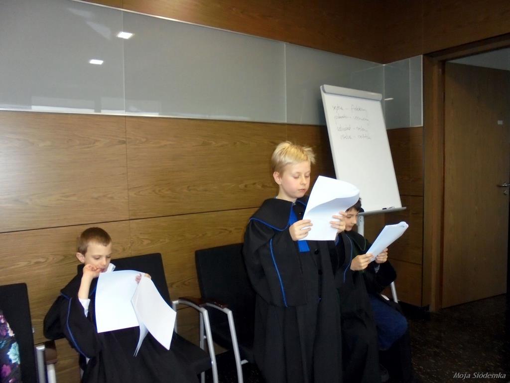 Nad całością scenariusza rozprawy czuwał pan dr Michał Urbańczyk i pani Agata Szadeberg mama Piotra. Pan Michał Urbańczyk doskonale komunikował się z dziećmi i wspaniałe wprowadzał ich w każdy temat.