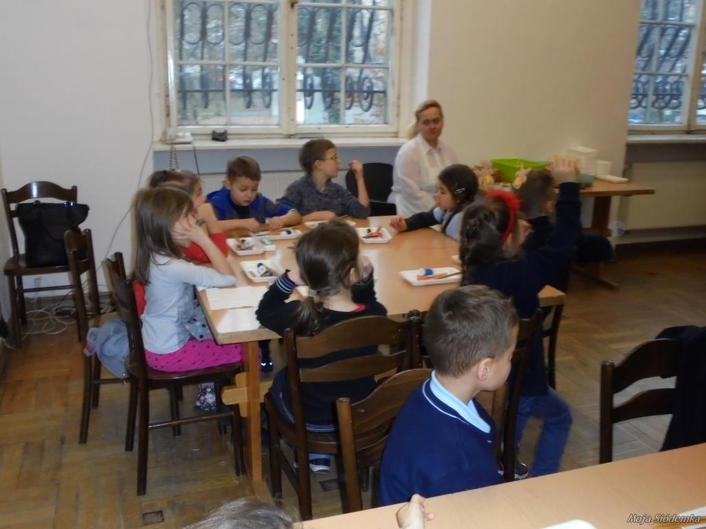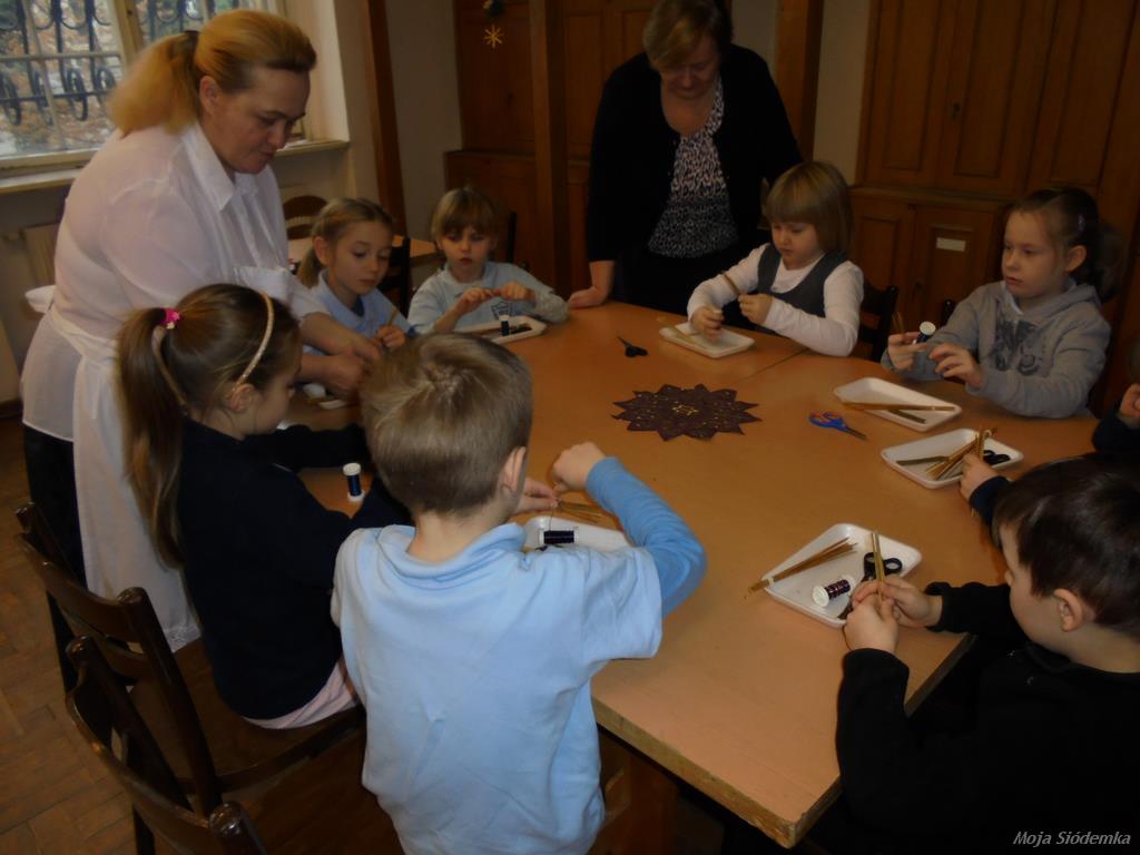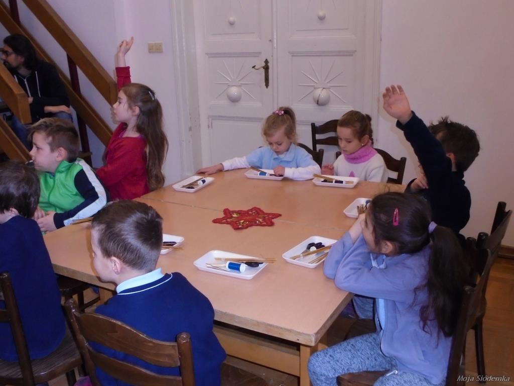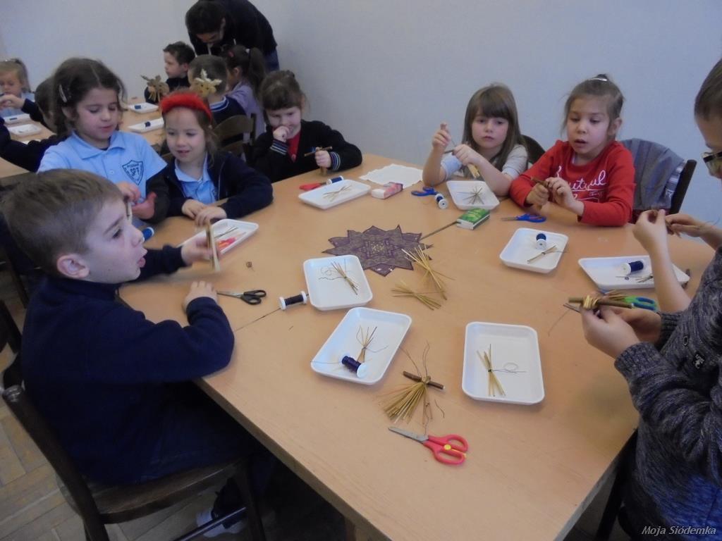 15 grudnia wybraliśmy się na wycieczkę do Muzeum Etnograficznego na warsztaty poświęcone tradycjom Bożego Narodzenia. Pani prowadząca warsztaty opowiedziała nam o dawnych zwyczajach i tradycjach bożonarodzeniowych. Dowiedzieliśmy się, że prababcią naszej choinki była podłaźniczka, którą zawieszano u powały w izbie. Ozdoby, jakimi była przybrana bardzo różniły się od dzisiejszych. Były one wykonane ze słomy, z papieru, a nawet z opłatka. Wieszano także cebulę i czosnek, które miały odstraszać z domu złe duchy. Poznaliśmy również symbolikę robienia łańcuchów. Kolorowy łańcuch związuje rodzinę.