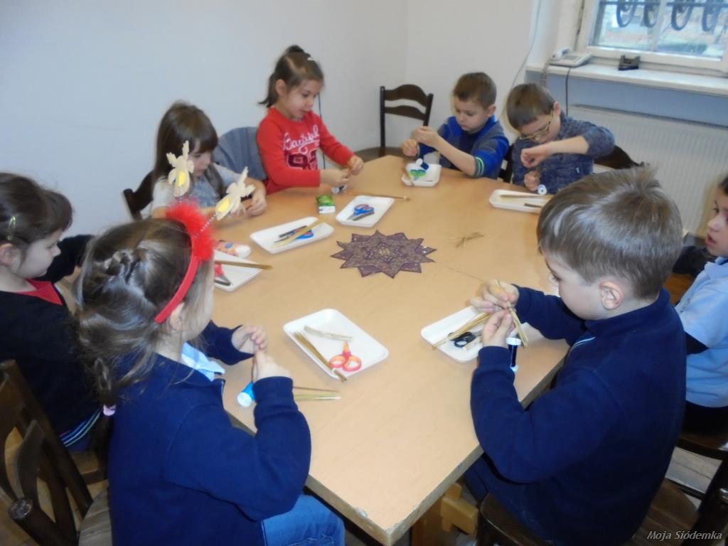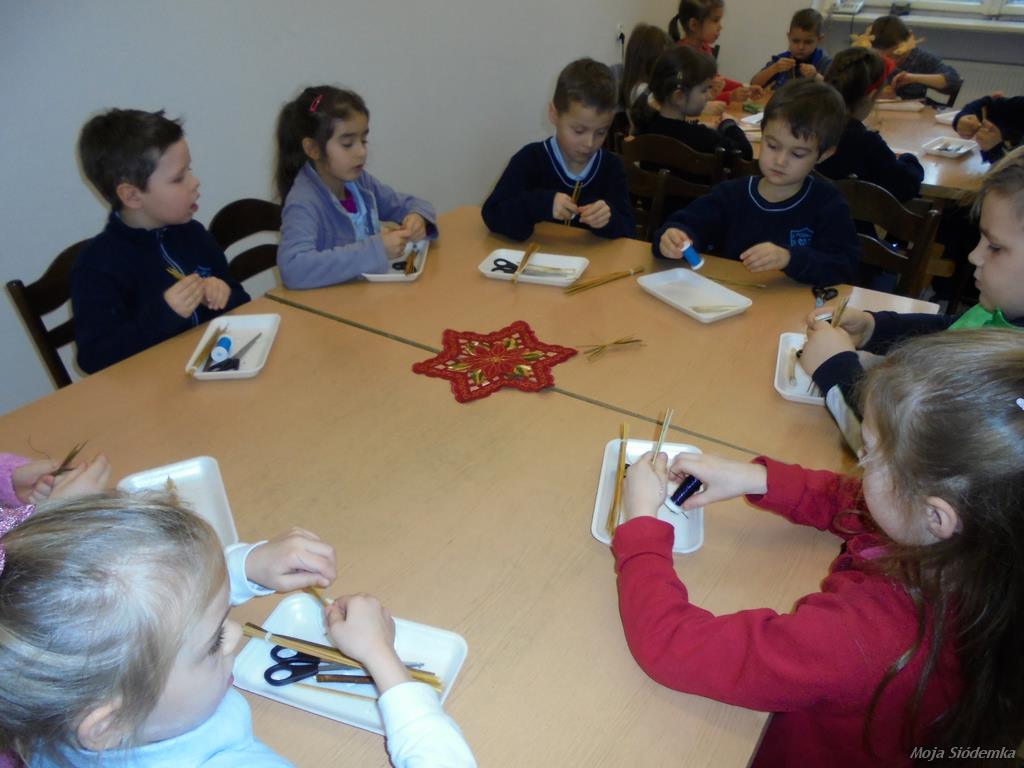 Po wysłuchaniu ciekawostek przystąpiliśmy do wykonania słomianego anioła ze słomy. Choć początkowo wydawało nam się, że wykonanie tej ozdoby sprawi nam trudność to okazało się, że wszyscy wykonaliśmy piękne słomiane anioły. Na koniec wzięliśmy udział w głosowaniu na najładniejszą szopkę bożonarodzeniową.