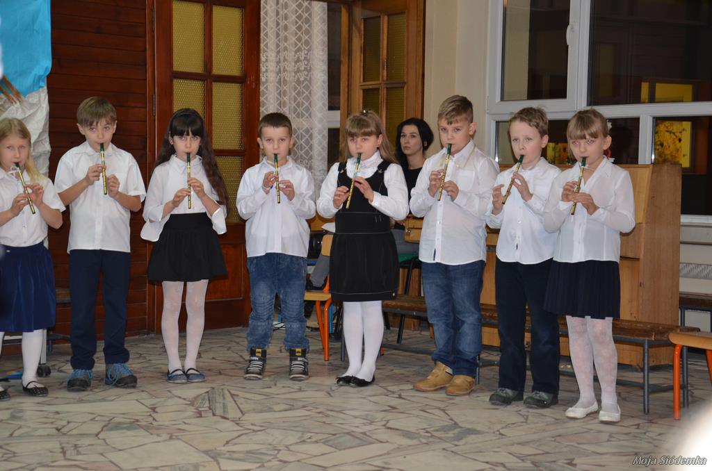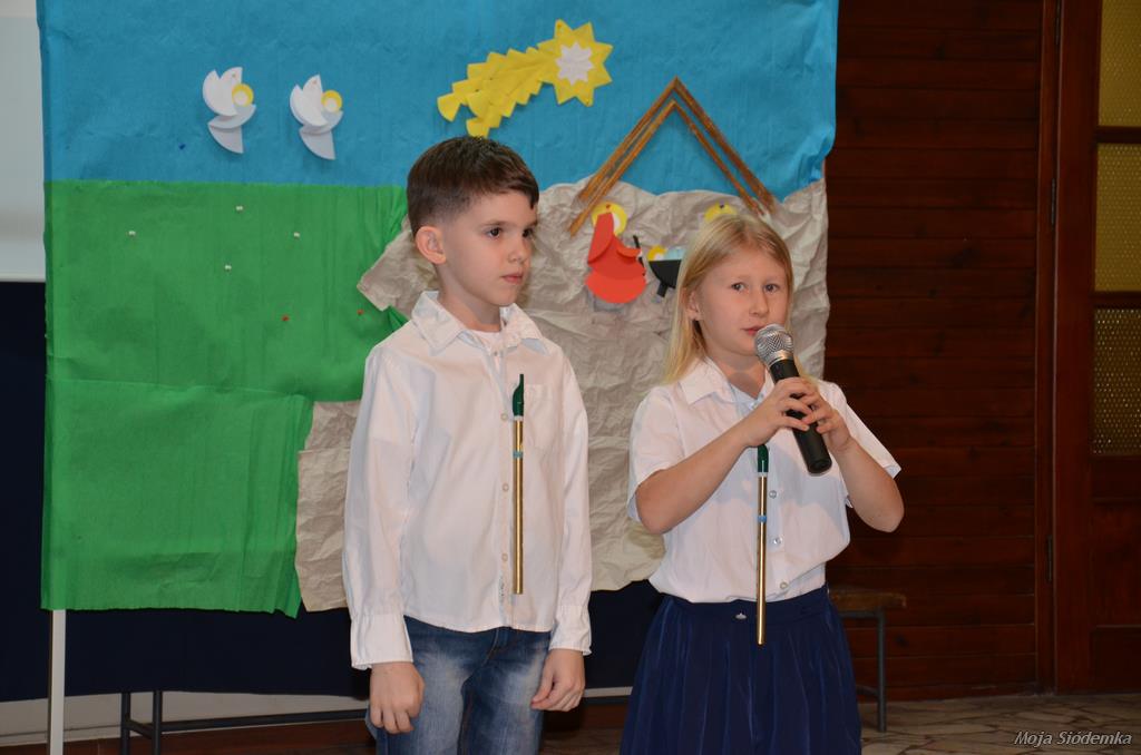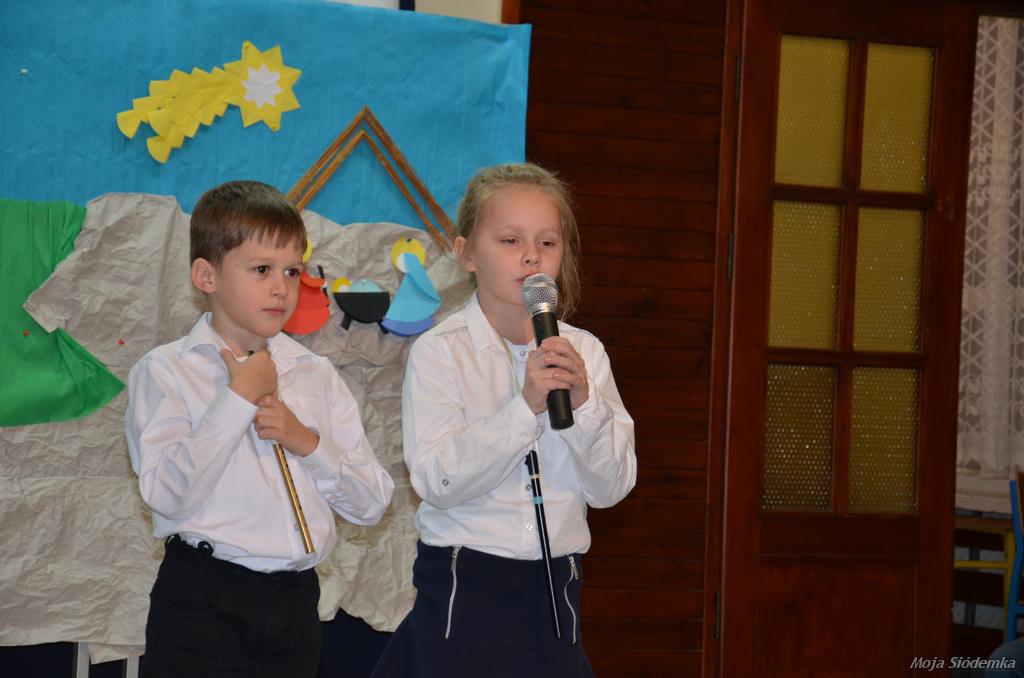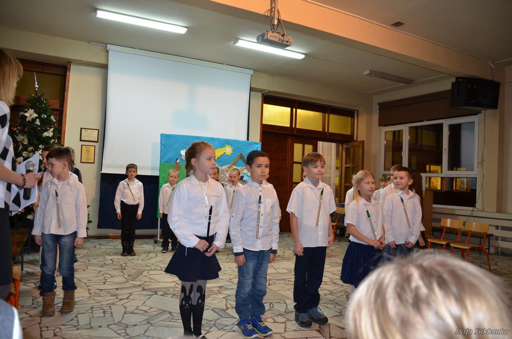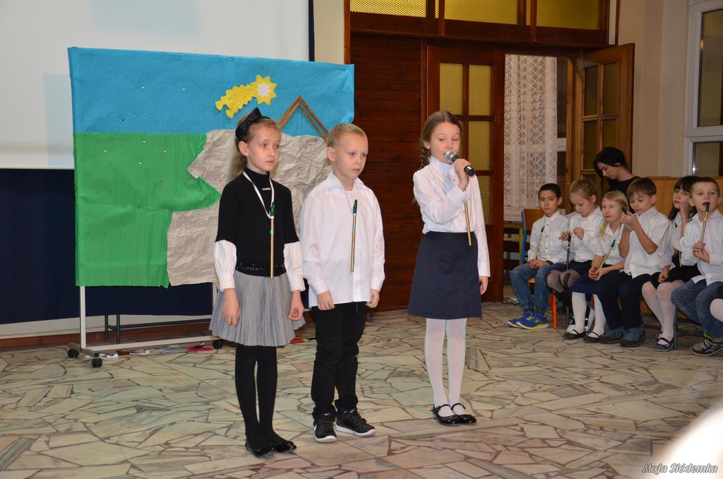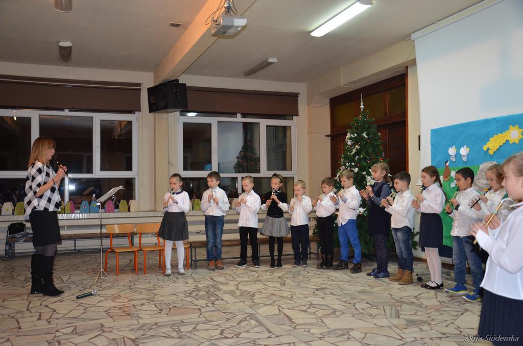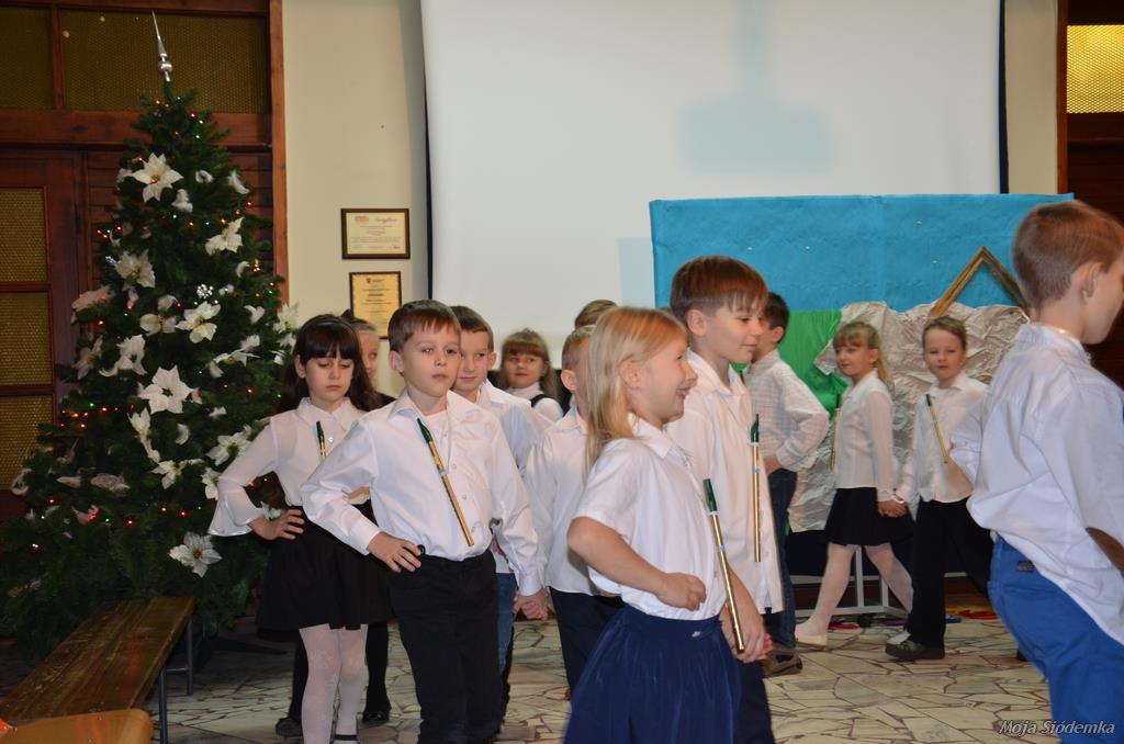 Nasza szopka powstała z figur wykonanych z orgiami z koła. Szopka powstawała na oczach widowni. Klasa II zagrała kolędy na flażoletach i zaprosiła widownię do wspólnego śpiewania. Dzieci zatańczyły tańce folkloru wielkopolskiego do melodii polskich kolęd: Bóg się rodzi chodzony korowodowy, Z narodzenia Pana taniec wielkopolski Walcerek, Pójdźmy wszyscy do stajenki taniec wielkopolski Szocz, Przybieżeli do Betlejem taniec wielkopolski Wiwat.