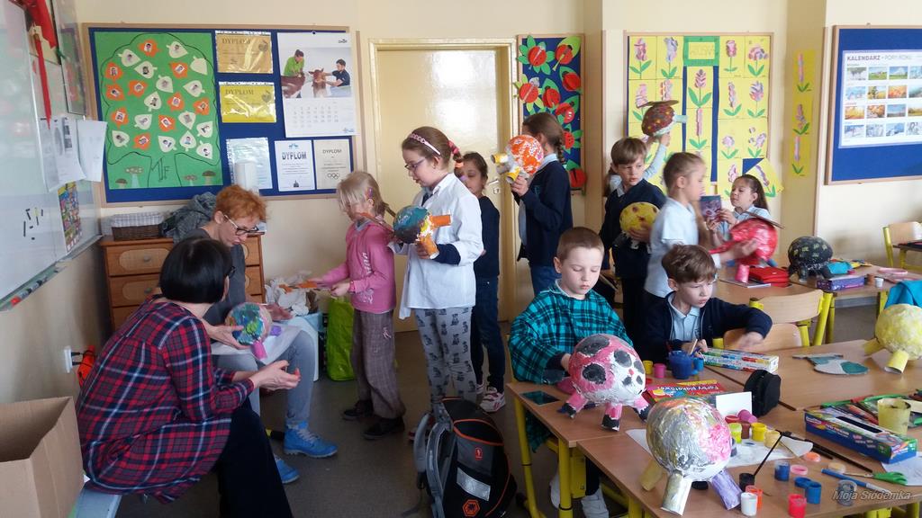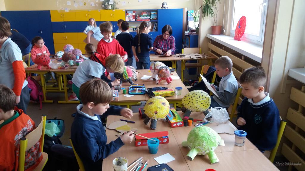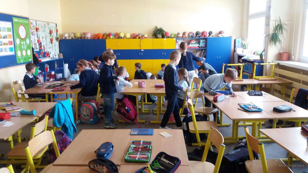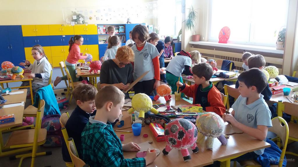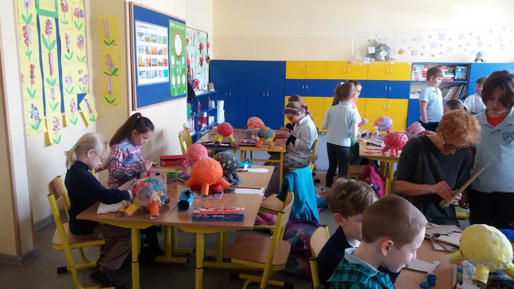 W czwartek (11.05) uczniowie klasy 2 e mieli kolejne warsztaty artystyczne z Panią Joanną Krzyżanek dotyczące pisowni wyrazów z „ż„. Najpierw musieli uważnie wysłuchać fragmentu tekstu, a później napisać na kartce wyraz z określoną pułapką ortograficzną. Z tych kartek, kwiatków i folii zrobili przezroczystą tkaninę, która ozdobiła klasę.