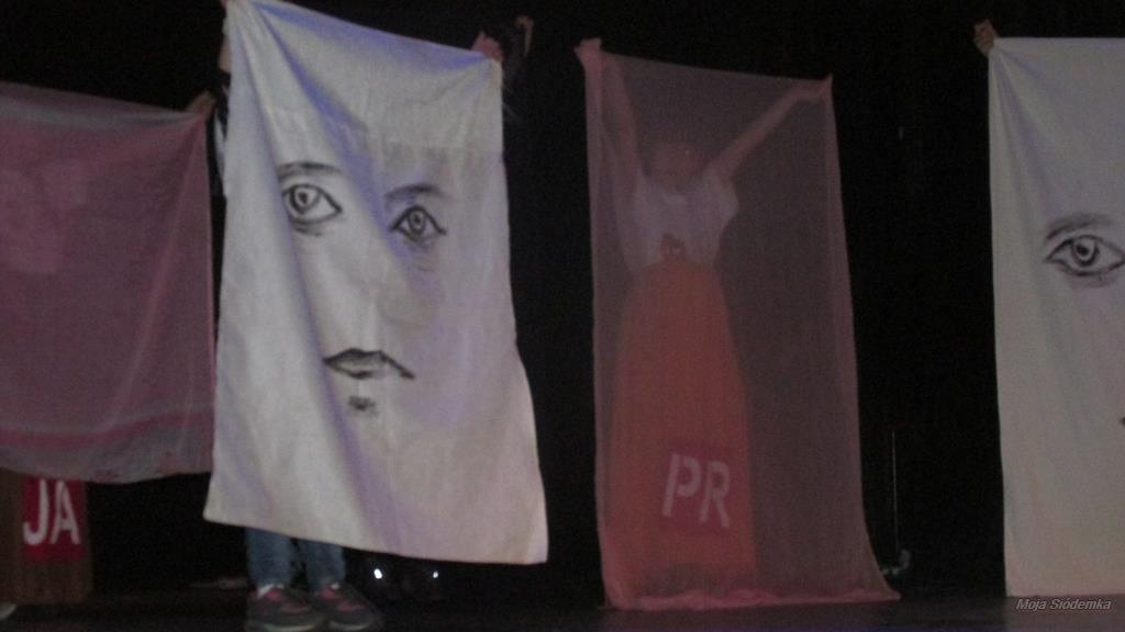 Na koniec przeglądu obejrzeliśmy etiudę teatralną Po drugiej stronie maski przygotowaną przez reprezentantów wszystkich grup (z naszej grupy występowała Julka Kurec) oraz aktorów Teatru Witryna.