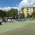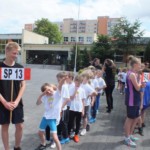 W środę, 7 czerwca w naszej szkole odbył się Międzyświetlicowy Miting Sportowy. W zawodach udział wzięło 8 szkół z całego Poznania: SP 11, SP 13, SP 20, SP 35, SP 46, SP 70, SP 71 oraz gospodarze czyli nasza Siódemka. Całą impreza była skierowana do dzieci uczęszczających do świetlic szkolnych, a w sumie udział wzięło ponad 100 uczestników. Wychowankowie świetlic rywalizowali w wyścigach rzędów na boisku szkolnym i świetnie się przy tym bawili. Nie straszny był nam również przelotny deszczyk, który zaskoczył nas w połowie zawodów, ale zakończenie trzeba było zorganizować w sali gimnastycznej, ponieważ zaczęło grzmieć.