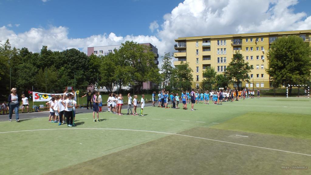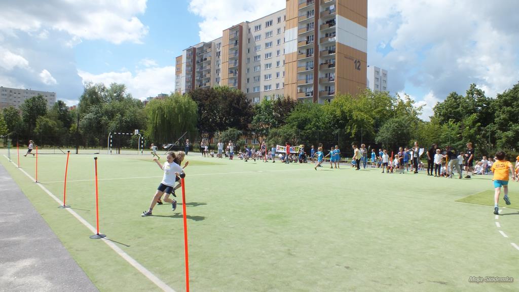W środę, 7 czerwca w naszej szkole odbył się Międzyświetlicowy Miting Sportowy. W zawodach udział wzięło 8 szkół z całego Poznania: SP 11, SP 13, SP 20, SP 35, SP 46, SP 70, SP 71 oraz gospodarze czyli nasza Siódemka. Całą impreza była skierowana do dzieci uczęszczających do świetlic szkolnych, a w sumie udział wzięło ponad 100 uczestników. Wychowankowie świetlic rywalizowali w wyścigach rzędów na boisku szkolnym i świetnie się przy tym bawili. Nie straszny był nam również przelotny deszczyk, który zaskoczył nas w połowie zawodów, ale zakończenie trzeba było zorganizować w sali gimnastycznej, ponieważ zaczęło grzmieć.