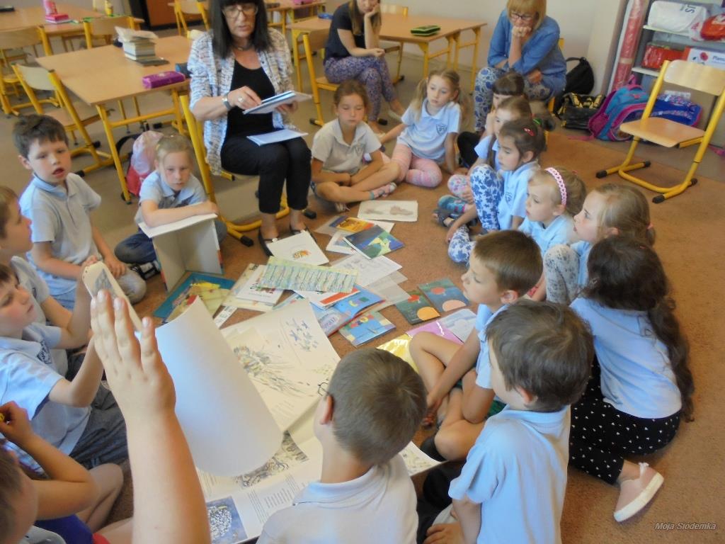 W piątek, 9 czerwca uczniowie klasy 1b gościli panią Elżbietę KrygowskąButlewską, która jest ilustratorem książek dla dzieci. Wszyscy znamy panią ilustrator, bo często bywa w naszej szkole, zwłaszcza przy okazji odbywających się konkursów recytatorskich i także dlatego, że jest przyjacielem Siódemki.