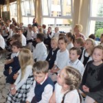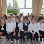 Dzieci pięknie zaśpiewały piosenki Literkowo i Jestem uczniem. Niezapomnianym przeżyciem dla dzieci z klas pierwszych było złożenie ślubowania przy sztandarze szkoły. Następnie każde dziecko zostało pasowane przez panią Dyrektor na ucznia. Na pamiątkę, tego ważnego dnia w szkole, pierwszoklasiści otrzymali kolorowy dyplom i ramkę z fotografiami wszystkich koleżanek i kolegów z klasy.