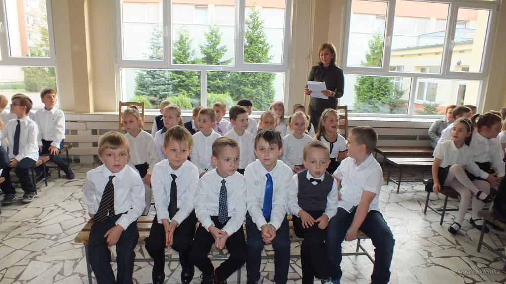 Dzieci pięknie zaśpiewały piosenki Literkowo i Jestem uczniem. Niezapomnianym przeżyciem dla dzieci z klas pierwszych było złożenie ślubowania przy sztandarze szkoły. Następnie każde dziecko zostało pasowane przez panią Dyrektor na ucznia. Na pamiątkę, tego ważnego dnia w szkole, pierwszoklasiści otrzymali kolorowy dyplom i ramkę z fotografiami wszystkich koleżanek i kolegów z klasy.