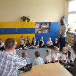 Po występie młodzi adepci Siódemki zostali kolejno wyczytani i osobiście przywitani przez swoich nowych wychowawców, a każdy uczeń otrzymał profesjonalnie przygotowaną plakietkę ze swoim imieniem. Potem wykonano pierwsze zdjęcia klasowe i nadszedł czas, aby udać się do swoich sal. Tam na pierwszoklasistów czekały kolejne niespodzianki gry i zabawy integracyjne. W tych salach młodzi uczniowie będą stawiać pierwsze kroki na swojej edukacyjnej drodze.