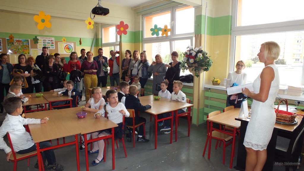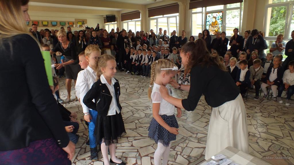 Po występie młodzi adepci Siódemki zostali kolejno wyczytani i osobiście przywitani przez swoich nowych wychowawców, a każdy uczeń otrzymał profesjonalnie przygotowaną plakietkę ze swoim imieniem. Potem wykonano pierwsze zdjęcia klasowe i nadszedł czas, aby udać się do swoich sal. Tam na pierwszoklasistów czekały kolejne niespodzianki gry i zabawy integracyjne. W tych salach młodzi uczniowie będą stawiać pierwsze kroki na swojej edukacyjnej drodze.