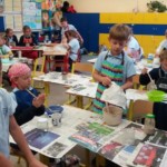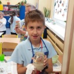 Ustaliliśmy proporcje wody i mąki, wymieszaliśmy składniki i tak przygotowany w miskach zakwas, przełożyliśmy do słoików, aby bezpiecznie przetransportować go do domu. Uczniowie wiedzą, że należy nakryć słoik przewiewną tkaniną, aby miał dostęp powietrza i „dokarmiać” przez 5-6 dni.