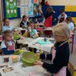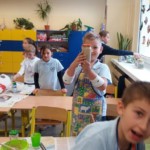 Wobec powyższego – chleb przyszedł do nas. W czwartek uczniowie poznali proces wypiekania chleba dawniej i dzisiaj. Obejrzeli pracę piekarzy. Zapoznali się z produkcją zakwasu. I nadszedł nareszcie najważniejszy moment dnia – przygotowanie własnego, samodzielnie wymieszanego zakwasu chlebowego. To zakwas z mąki żytniej, pełnoziarnistej. Dzieci dowiedziały się, że wyrażenie „pełnoziarnisty” oznacza, iż ziarno jest czyste, ale nienaruszone. I w tej postaci rozciera się je na mąkę.