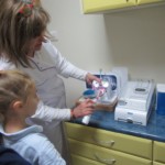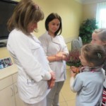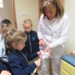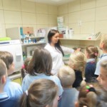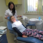 Aby sprawdzić w praktyce zdobyte dotychczas wiadomości, udaliśmy się do jednego z gabinetów stomatologicznych, znajdujących się  w  pobliżu naszej szkoły. Podczas wizyty w gabinecie dzieci mogły  zapoznać się szczegółowo z pracą dentysty. Nie straszny okazał się ani fotel dentystyczny, ani wiertła, o których pani doktor pieszczotliwie mówiła, iż, są to po prostu dentystyczne długopisy. Dzieci zapoznały się z takimi pojęciami jak sterylizacja, bakterie, próżnia, ciśnienie. a przymierzany fartuch do wykonywania zdjęć rentgenowskich, okazał się bardzo ciężki. Wszystkie panie pracujące w gabinecie były pod wrażeniem  dużej wiedzy dzieciaków na temat prawidłowego dbania o higienę jamy ustnej oraz prawidłowego odżywiania. Okazało się, że cała klasa  zasłużyła  na miano dzielnego pacjenta, dlatego na koniec wizyty wszyscy otrzymali podarunki w postaci szczoteczek do zębów oraz tubki pasty do zębów. Wycieczka okazała się na tyle atrakcyjna, iż padły  nawet deklaracje, co do wykonywania przyszłego zawodu stomatologa, przez niektóre z dzieci.