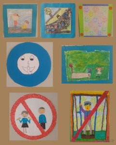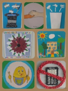 Pomocne okazało się także nasze pierwsze zadanie: każda klasa po wylosowaniu hasła z Kodeksu stworzyła symboliczny znak drogowy, a wytwory naszej pracy zostały wywieszone na I piętrze. Już nikt nie powinien mówić, że czegoś nie wie, bo kolorowe plansze doskonale przypominają o właściwym postępowaniu! I tak na drzwiach i tablicach pojawił się m.in. kosz na śmieci z informacją, co należy robić z odpadami, zegar, uczący punktualności, znaki nakazu chodzenia w parach, czy pomagania sobie wzajemnie, a także zakazy, dotyczące dyskryminacji czy braku tolerancji. Profesjonalne jury oceniło terminowość dostarczenia pracy, zgodność z tematem i czytelność oraz estetykę, a potem przydzieliło stosowne punkty.