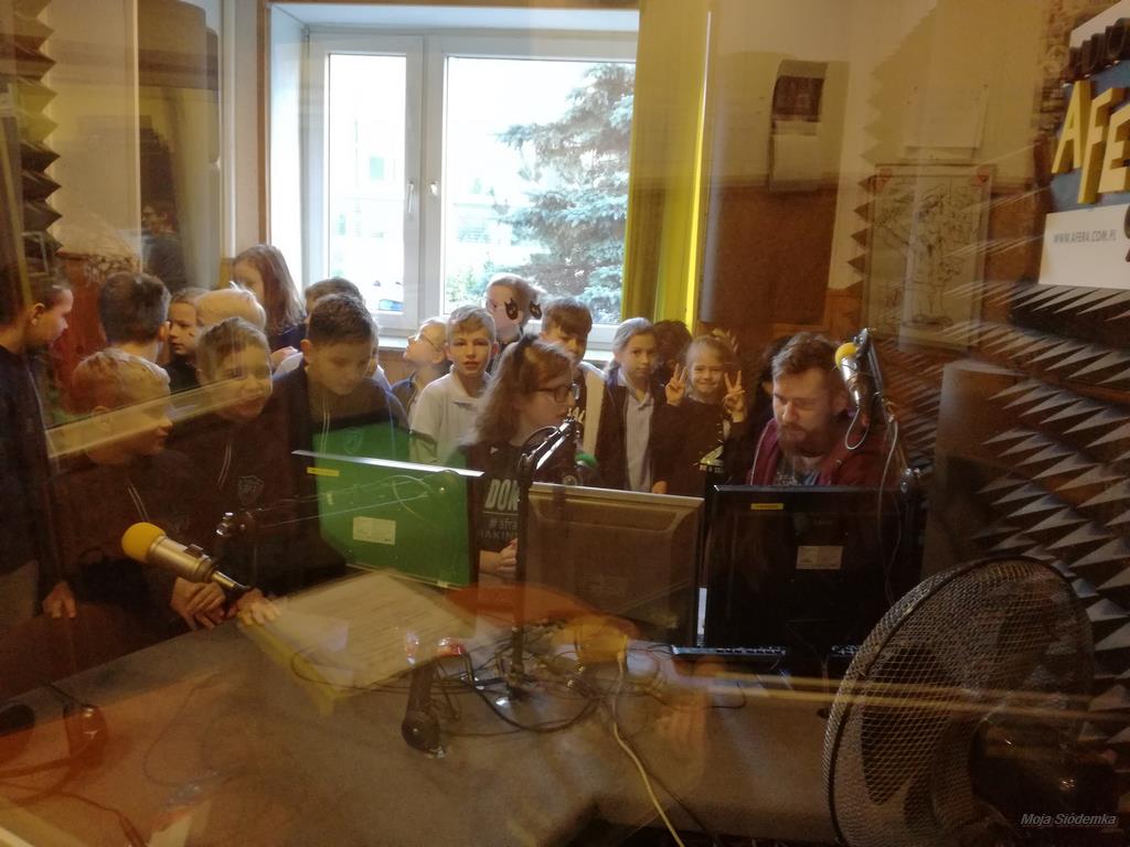 23 listopada uczniowie klasy 4f zostali zaproszeni na nietypowe lekcje do rozgłośni radiowej Radia AFERA. Uczestnicy zajęć mięli możliwość przebywania w profesjonalnym studiu, zapoznali się ze specyfiką pracy i atmosferą panującą w rozgłośni radiowej.