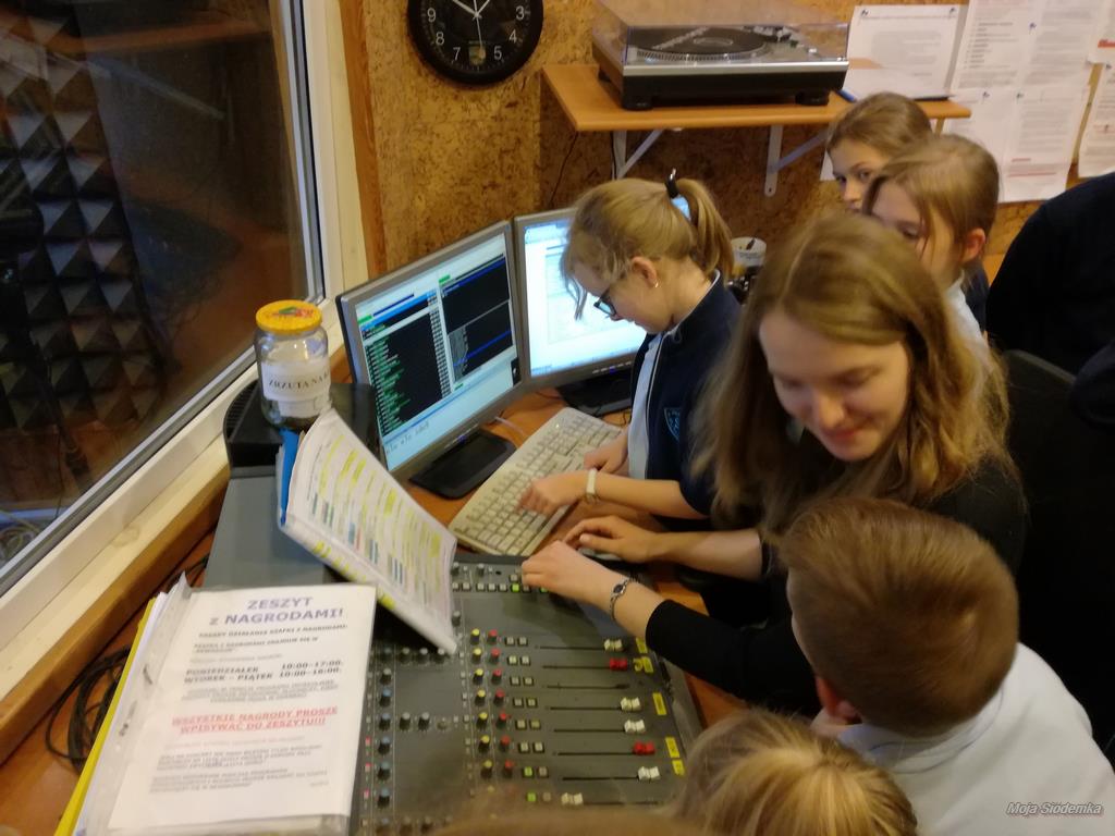 Tego dnia około godziny dziesiątej mogliśmy usłyszeć ich na fonii. Redaktorzy z dużą otwartością i życzliwością przekazywali różne ciekawe opowieści i oprowadzali uczniów Siódemki po pomieszczeniach radiowych.