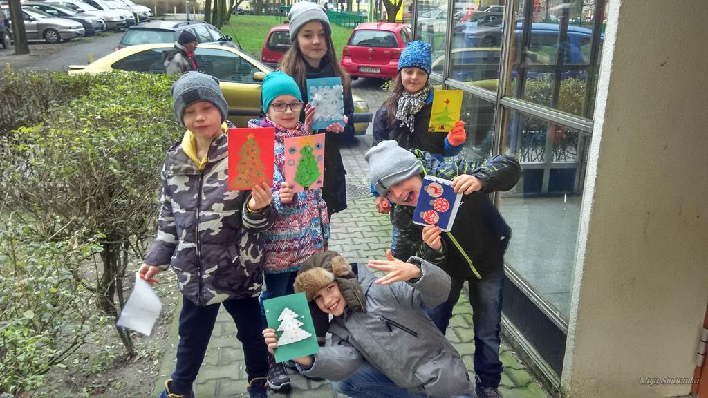 W tym roku dodatkowo wręczaliśmy KAŻDEJ OSOBIE CHOREJ piękną kartkę wykonaną samodzielnie przez Mały Samorząd. Piękny pomysł p. Joli Ławniczak sprawdził się, bo radość z tych kartek była naprawdę wielka. Kartki cudne, co widać na zdjęciu!