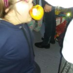 Najlepszą zabawą i wróżbą na wypełnienie się losu, było zajadanie zawieszonych na tasiemkach jabłek. Nie wolno nam było używać rąk, żadnych podpórek i innych ułatwień. Takie jabłko ciężko jest ugryźć! A co dopiero zjeść w wyznaczonym czasie! Ale niektórzy poradzili sobie zupełnie dobrze i jabłka były całkiem nieźle objedzone :).