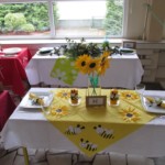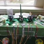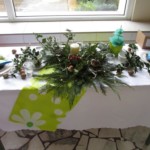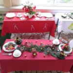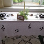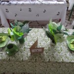A na deser słów kilka o niezwykłych kompozycjach, które w drugim tygodniu grudnia pojawiły się w holu głównym. Tak , tak chodzi o wspaniale udekorowane stoły. Może kogoś z Was zdziwiły nuty lub piłki nożne, będące elementami składowymi wystroju Nie ma jednak podstaw do niepokoju! Taki był zamysł realizacji trzeciego zadania, w którym klasy losowo wybierały tematykę udekorowania stołu. Stąd na obrusach niecodzienne przedmioty, jak flagi, papierowe pszczoły, kwiaty, a nawet sztuczna trawa, czy rozsypane znaki muzyczne. Czy potraficie odgadnąć, jaki temat przewodził poszczególnym klasom Spróbujcie, a potem sprawdźcie odpowiedzi na zdjęciach.