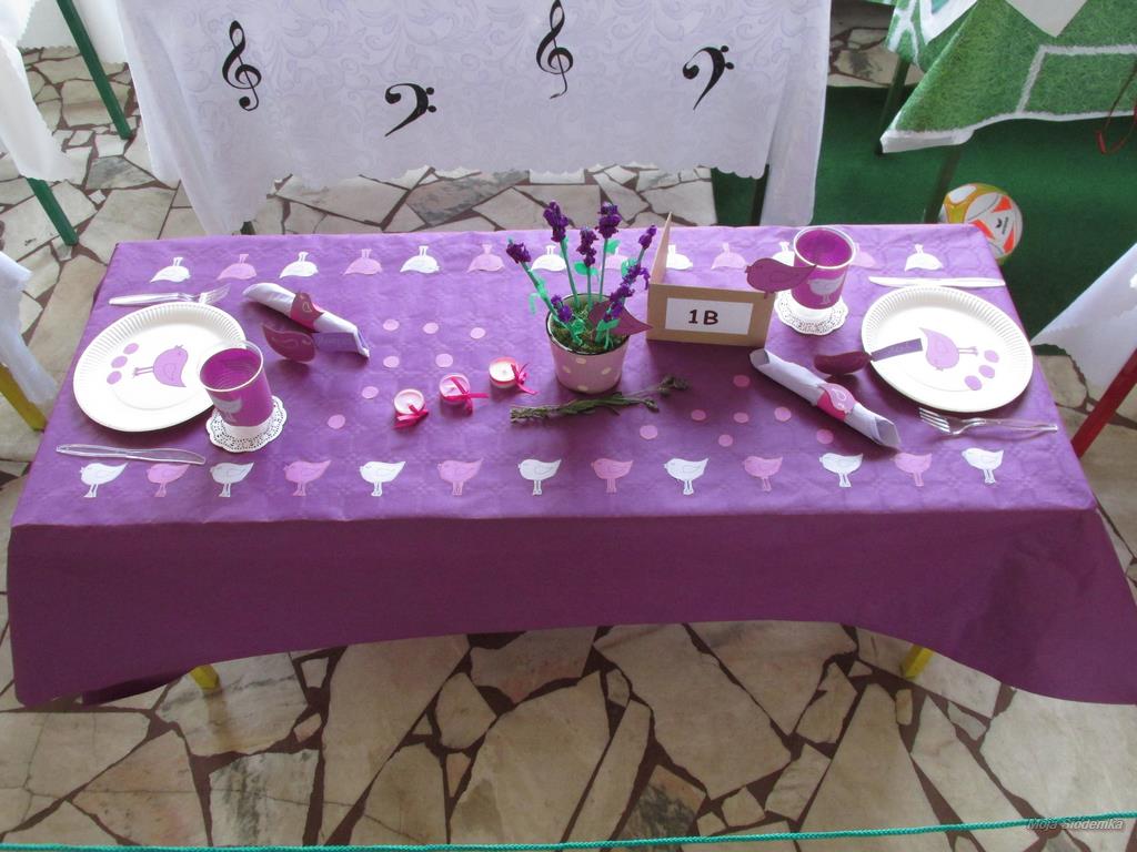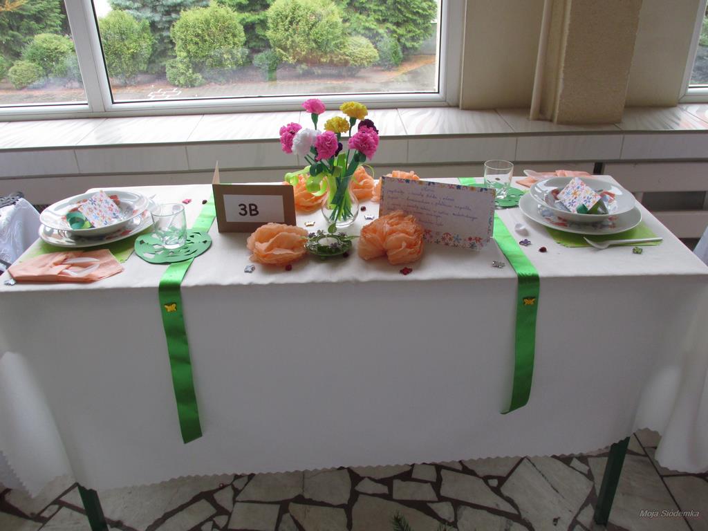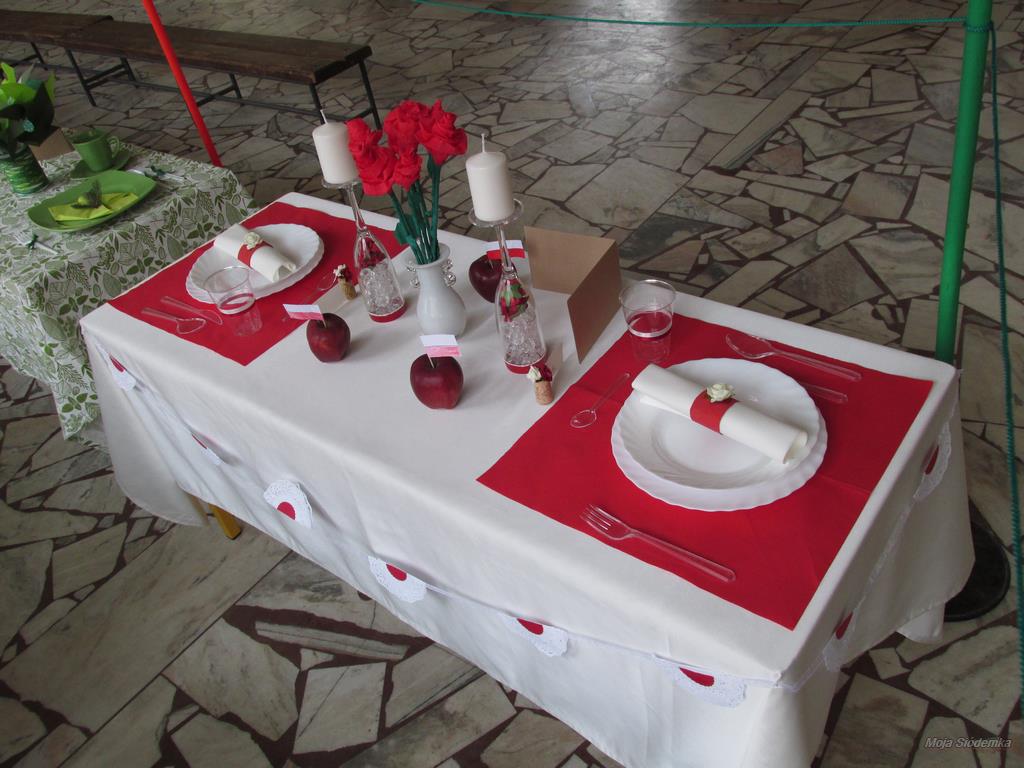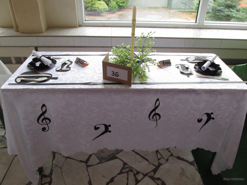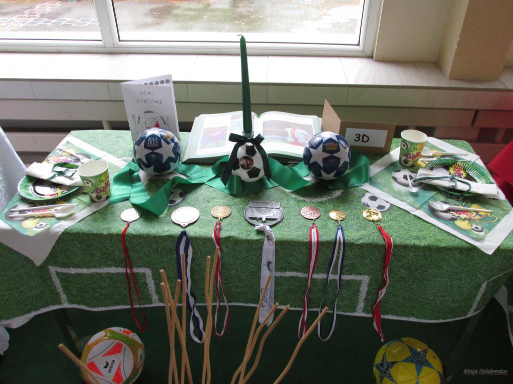 A na deser słów kilka o niezwykłych kompozycjach, które w drugim tygodniu grudnia pojawiły się w holu głównym. Tak , tak chodzi o wspaniale udekorowane stoły. Może kogoś z Was zdziwiły nuty lub piłki nożne, będące elementami składowymi wystroju Nie ma jednak podstaw do niepokoju! Taki był zamysł realizacji trzeciego zadania, w którym klasy losowo wybierały tematykę udekorowania stołu. Stąd na obrusach niecodzienne przedmioty, jak flagi, papierowe pszczoły, kwiaty, a nawet sztuczna trawa, czy rozsypane znaki muzyczne. Czy potraficie odgadnąć, jaki temat przewodził poszczególnym klasom Spróbujcie, a potem sprawdźcie odpowiedzi na zdjęciach.