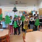 We wtorek, 5 grudnia dzieci z kółka recytatorskiego wraz z uczniami klasy 2b odwiedziły najmłodszych uczniów naszej szkoły, czyli dzieci z oddziału przedszkolnego. Przygotowały dla nich krótką inscenizację pt. Co słychać w jesiennym lesie. Inscenizację przygotowywały na zajęciach kółka recytatorskoliterackiego, a rekwizyty i kostiumy zostały wykonane z pomocą rodziców. Uczniowie bardzo przeżywali swój występ. Zależało im, aby wypaść jak najlepiej. Przez kilka tygodni ćwiczyły dykcję oraz właściwą interpretację tekstu, poszczególnych ról. Dużą uwagę przywiązywały do tego, aby gestem i zachowaniem pokazać, jakim są zwierzątkiem.