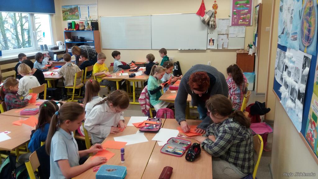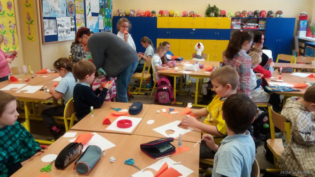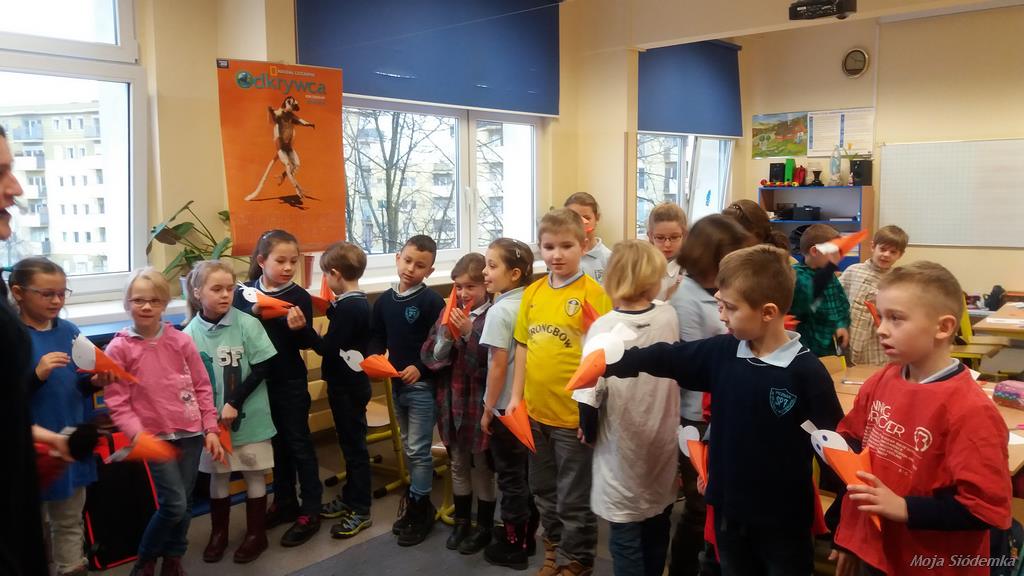 Uczniowie klasy 2 e mieli kolejne zajęcia z p. Joanną Krzyżanek, na których zmagali się z ortografią w zakresie pisowni wyrazów z ę, ą, om. Poznali gęś Walerkę, z którą ochoczo współpracowali. Każde dziecko wykonało swoją osobistą gąskę. Zabawa jak zwykle przednia, a umiejętności ortograficzne zostaną w głowach.