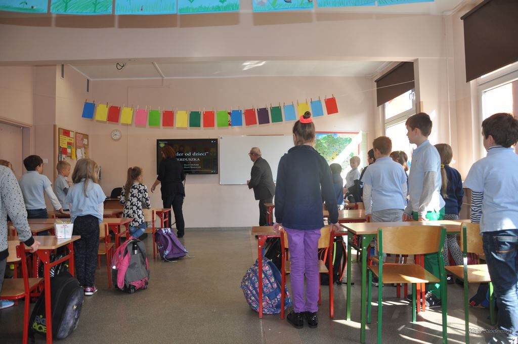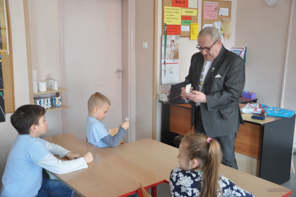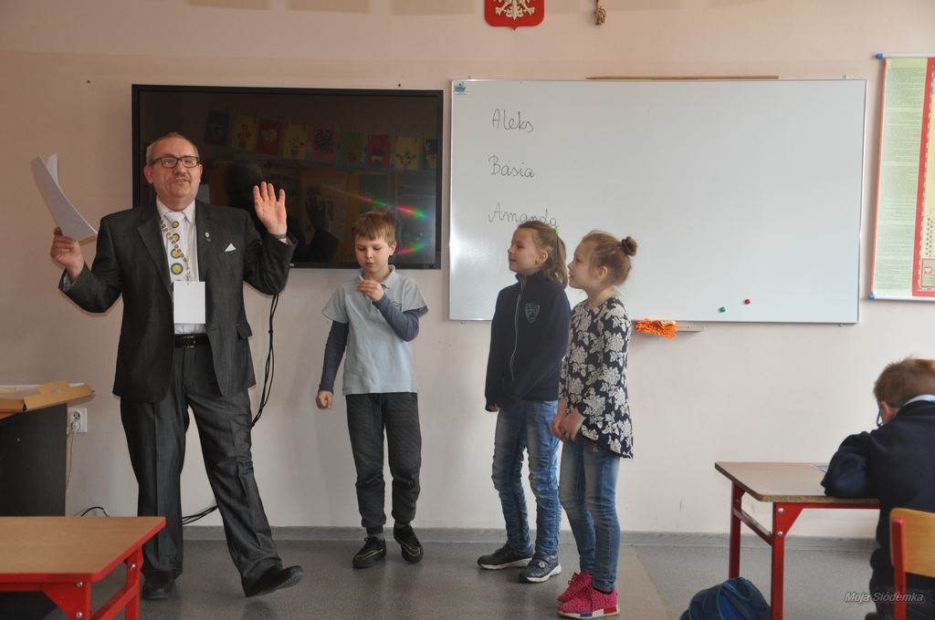 Pan Włodzimierz opowiedział nam o swojej pracy z dziećmi i młodzieżą. Obejrzeliśmy film, który przedstawiał historię odznaczenia oraz osoby, które zostały nim uhonorowane. Później odbył się konkurs wiedzy o Orderze Uśmiechu. Pytania nie sprawiły nam żadnych trudności. To spotkanie na długo pozostanie w naszej pamięci.