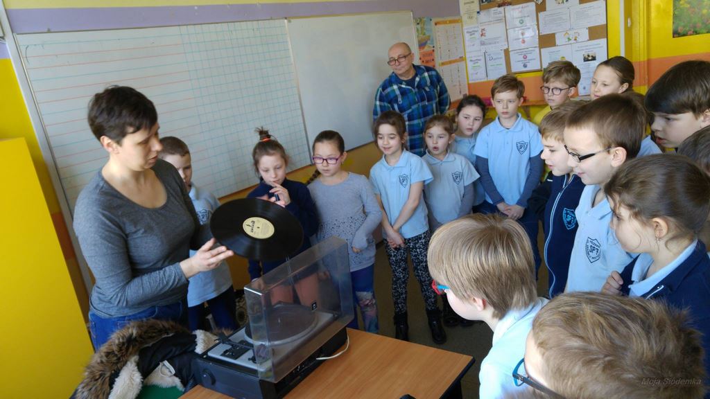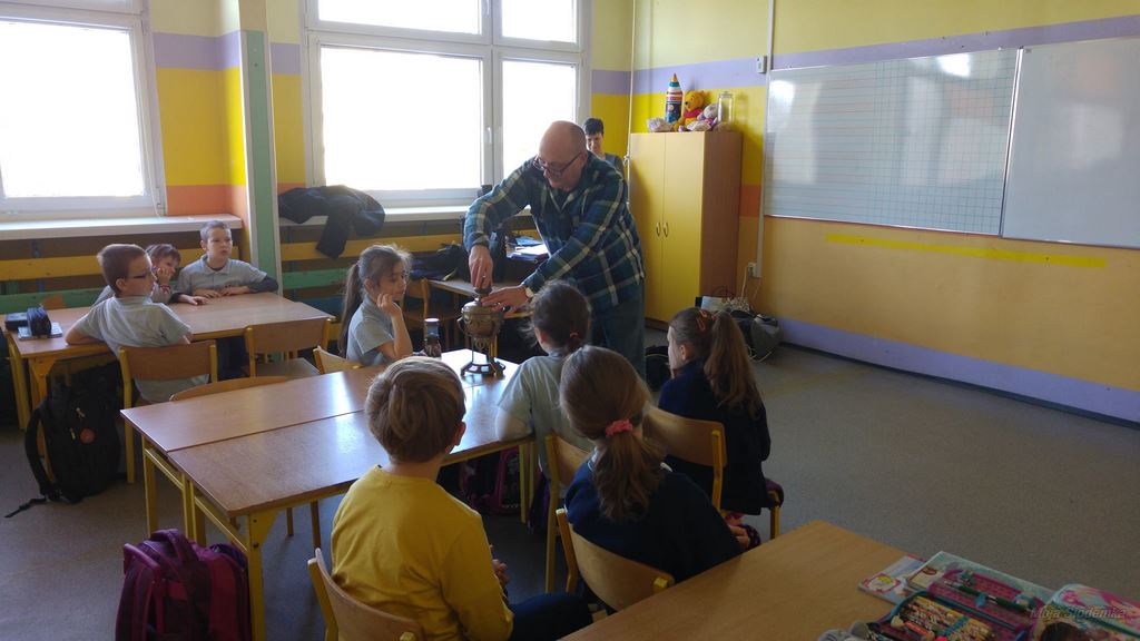 Poznając tematykę związaną z elektrycznością uczniowie z klasy 2c przynieśli do szkoły swoje rodzinne pamiątki z czasów babć i prababć. Wielką radość sprawiła możliwość obejrzenia na własne oczy dawnych urządzeń i porównywanie ich z tymi aktualnymi. Uczniowie mogli zobaczyć: kołowrotek, stary telefon, żelazko na duszę, strugaczkę, młynek do mielenia kawy, kasety magnetofonowe oraz rzutnik do wyświetlania bajek na ścianie. Dzięki mamie i wujkowi Mateusza dzieci dowiedziały się jak kiedyś oświetlano mieszkania, sprawdzały jak wyglądały lampy naftowe oraz miały możliwość posłuchania muzyki z płyty gramofonowej. Dzieciom bardzo podobała się możliwość dotknięcia i przetestowania dawnych sprzętów. Cały tydzień z zaciekawieniem spoglądali na naszą klasową wystawę.