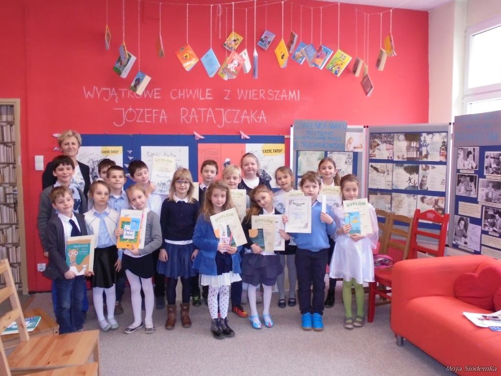 14 marca w bibliotece naszej szkoły po raz siedemnasty odbył się finał międzyszkolnego konkursu recytatorskiego dla klas 1-3. W tym roku szkolnym do konkursu zgłosiło się 6 szkół z dzielnicy Grunwald. Podczas konkursu zaprezentowali się najlepsi recytatorzy ze Szkoły Podstawowej nr 74, nr 80, nr 88, nr 90, nr 4 i nr 7.