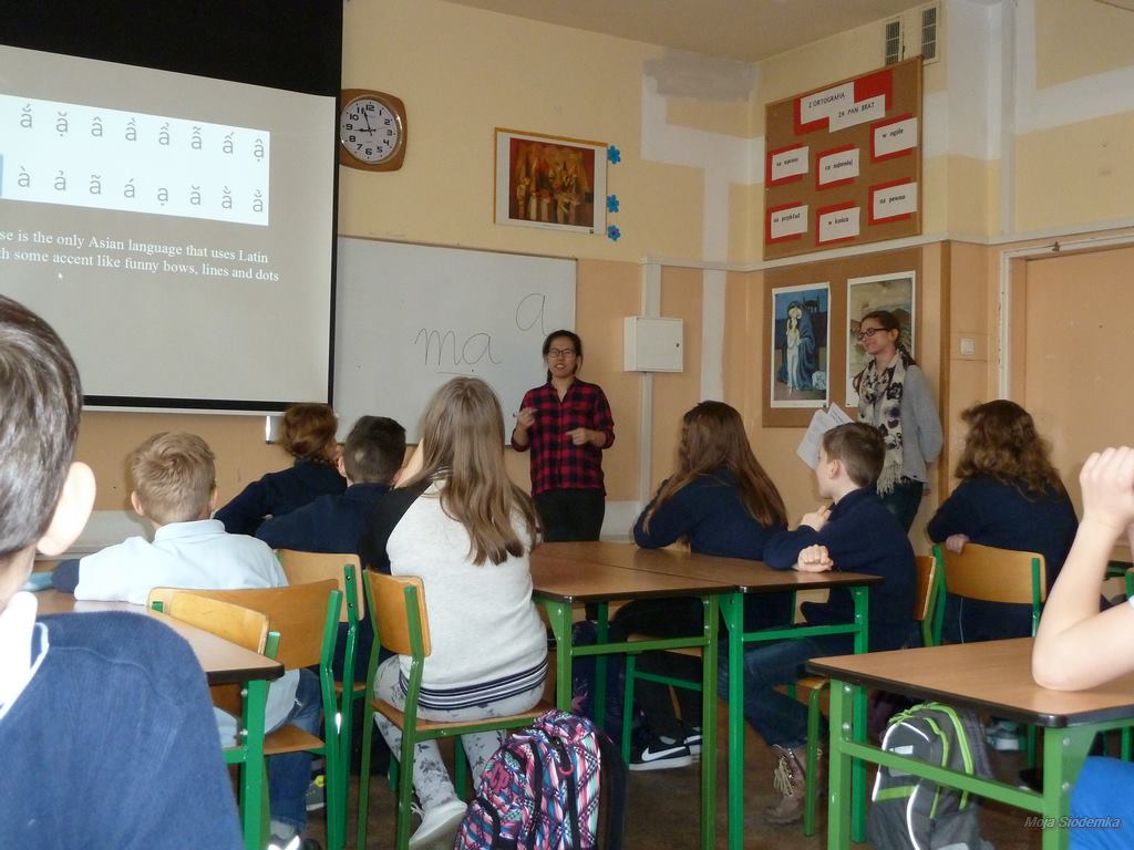 Dzięki współpracy z organizacją Poznań Hub w naszej szkole odbywają się warsztaty międzykulturowe Szkoła bez granic. Adresatami projektu są uczniowie klas szóstych, którzy mają okazję zapoznać się z kulturą, zwyczajami, tradycjami rożnych krajów oraz podszkolić swój język angielski. Do tej pory odwiedzili nas goście, m..in. z Wietnamu, Sri Lanki, Libii.