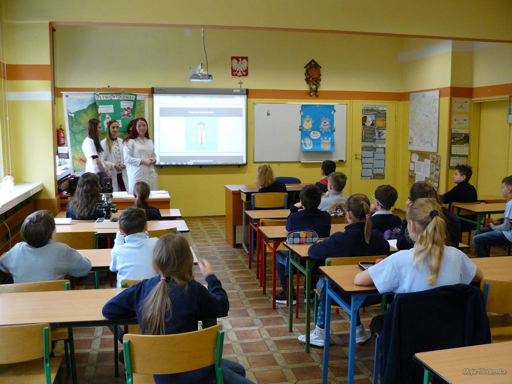 Nasi studenci z klas IV, tym razem uczestniczyli w zajęciach na terenie szkoły. Absolwentki Wydziału Analityki Uniwersytetu Medycznego przygotowały dla nich niezwykle atrakcyjne warsztaty: dzieci obserwowały bakterie, uczyły się posługiwać sprzętem laboratoryjnym, rozpoznawały składniki krwi.