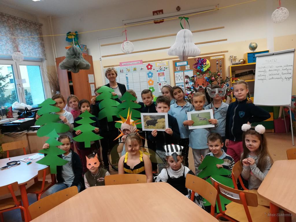 We wtorek, 5 grudnia dzieci z kółka recytatorskiego wraz z uczniami klasy 2b odwiedziły najmłodszych uczniów naszej szkoły, czyli dzieci z oddziału przedszkolnego. Przygotowały dla nich krótką inscenizację pod tytułem Co słychać w jesiennym lesie. Inscenizację przygotowywały na zajęciach kółka recytatorsko literackiego, a rekwizyty i kostiumy zostały wykonane z pomocą rodziców.
