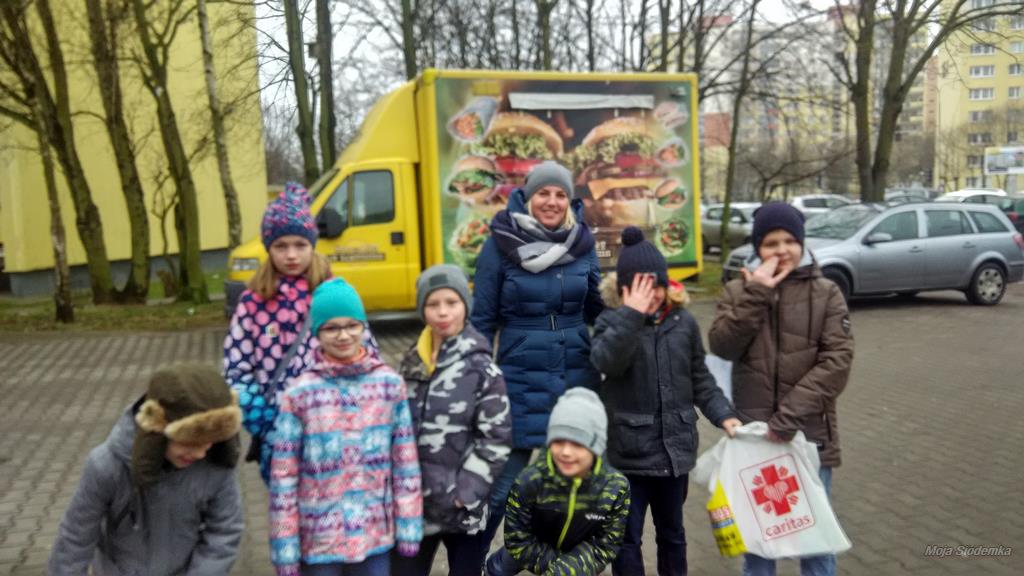 I tak zadziało się 16 grudnia o godzinie dziesiątej. Nasi uczniowie z Siódemki zamienili się w Aniołów i przybyli, aby rozdać paczki ufundowane przez parafię pw. Świętej Rodziny. Na liście było aż 120 chorych…