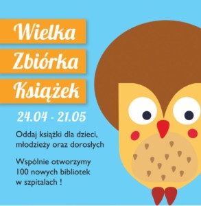 Nasza szkoła przystąpiła do akcji „Wielka zbiórka książek„, organizowanej przez fundację Zaczytani.org. Misją Fundacji jest wsparcie dzieci, młodzieży oraz dorosłych przebywających w szpitalach oraz promowanie czytelnictwa. Książki zbierane są w ponad 1600 punktach w pięciu miastach. Zebrane książki przekazujemy do placówek medycznych w całej Polsce. Wspólnie otworzymy 100 nowych bibliotek w szpitalach.