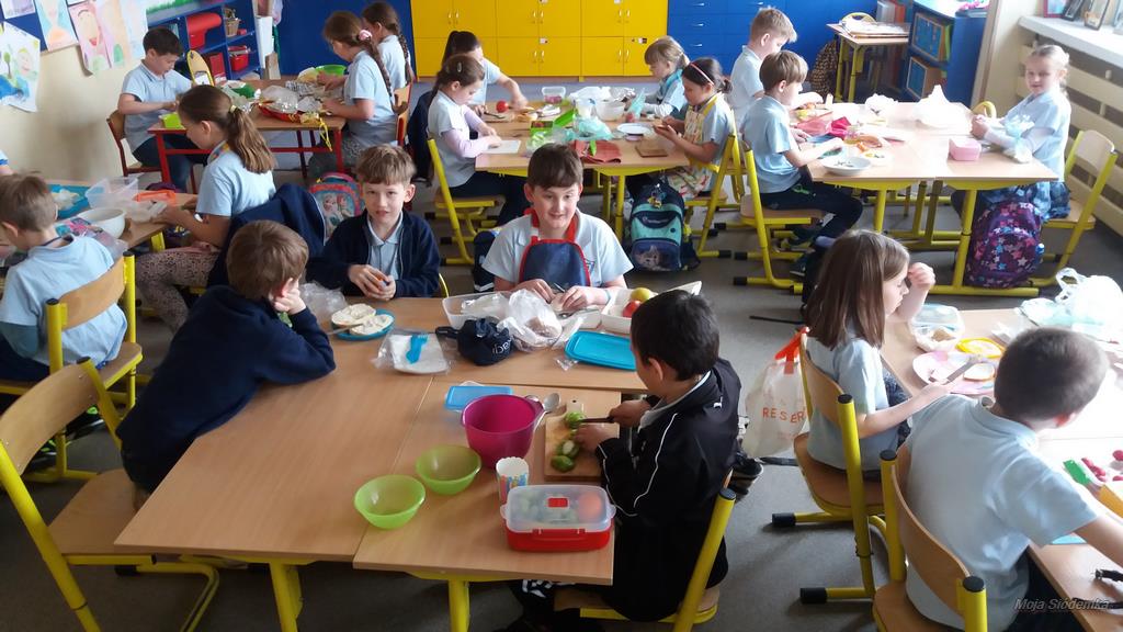 Wiosna w pełni, wybuchła nagle. Jest ciepło i pięknie. Trudno usiedzieć w salach, kiedy za oknem szaleje zieleń, świeci słońce. Trzeba jednak zadbać o siebie, aby cieszyć się wiosną podczas zabawy i nauki. W tym celu uczniowie klasy 3e postanowili wzmocnić swoje organizmy pożywnym, zdrowym śniadaniem.