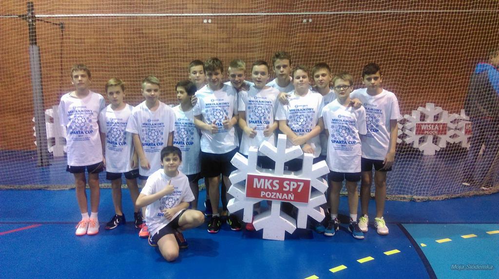 W pierwszy weekend grudnia chłopcy klasy 6d wzięli udział w bardzo silnie obsadzonym Ogólnopolskim Turnieju Sparta Cup w Obornikach Wlkp. Po 3 dniowych często bardzo emocjonujących rozgrywkach nasz zespół zajął 4 miejsce, ulegając w meczu o brąz gospodarzom dopiero po rzutach karnych. Miejsce zaraz za podium przyjęte ze sporym niedosytem wynagrodziła nagroda indywidualna Króla Strzelców Turnieju dla Tomka Jelinskiego, natomiast Adam Biegoń został wyróżnionym zawodnikiem zespołu.