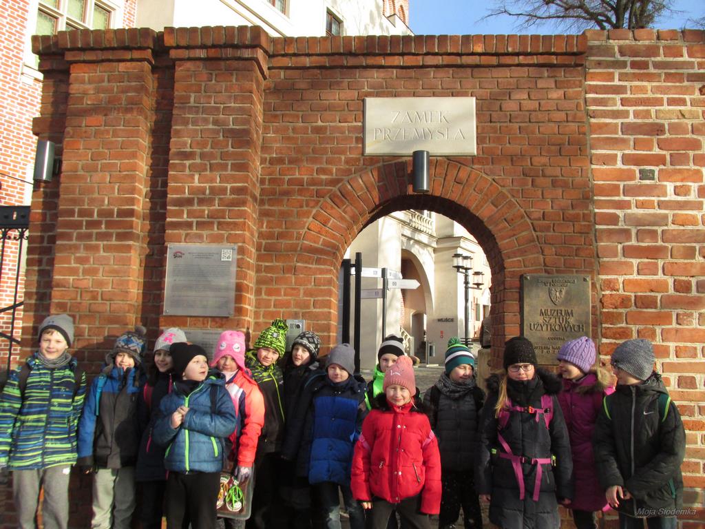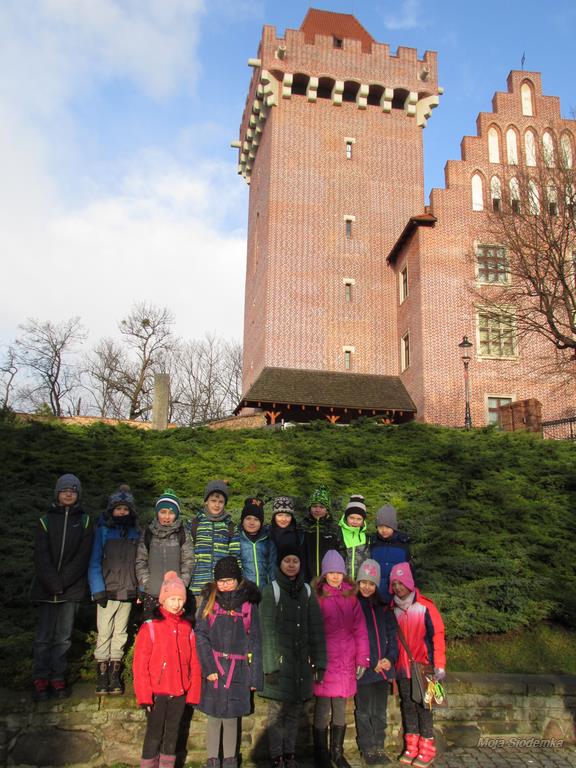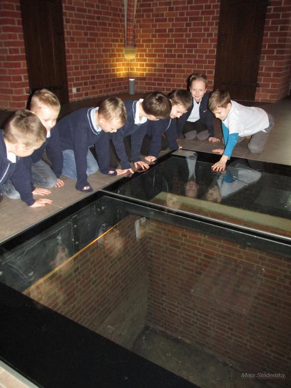 Najpierw wspięliśmy się na wzgórze Przemysła, aby z wieży podziwiać panoramę Poznania. Tu czekała na nas niespodzianka – nad osiedlem Piątkowo rozpościerała się tęcza. Wypatrywaliśmy miejsc charakterystycznych dla dzielnicy Grunwald. Ciarki nam wyszły na rękach, gdy oglądaliśmy grubość murów zamkowych i wyobrażaliśmy sobie lochy. Obejrzeliśmy pieczęć Przemysła, która dała początek godłu polskiemu.