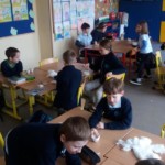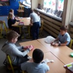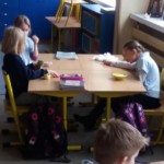 Później uczniowie przygotowali kartki świąteczne, które wyślą do najbliższych, aby tradycji stało się zadość. Dzieci wspólnie zredagowały życzenia wielkanocne i przepisały na kartki. W planie mają własnoręczne zaadresowanie kopert, naklejenie znaczka i samodzielne wysłanie listu do adresatów.