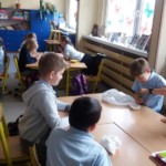 W Glinianej Kuli ulepili miseczki. Pewnego dnia wykorzystali swoje prace do posiania rzeżuchy. Siewy wykonali tradycyjną metodą „na watę” 🙂 . Każdy starannie wypełnił nią swoje naczynie, polał wodą i precyzyjnie posypał pachnącymi ziarenkami.
