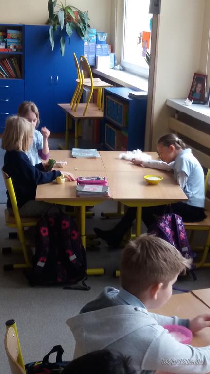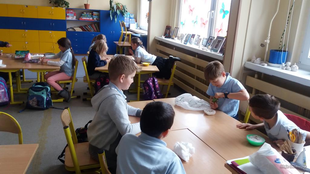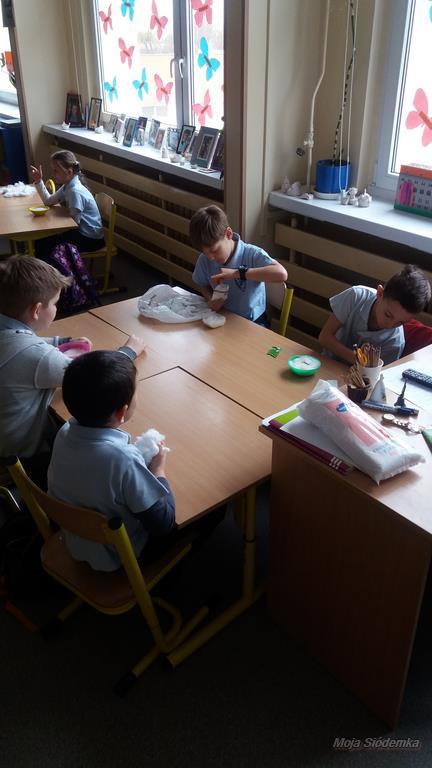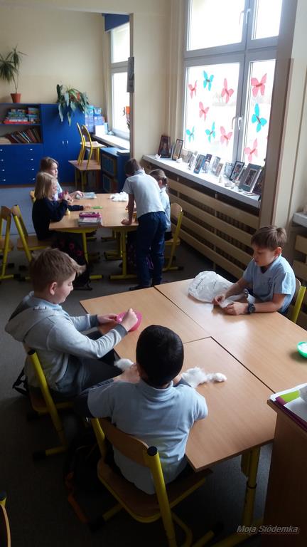 Później uczniowie przygotowali kartki świąteczne, które wyślą do najbliższych, aby tradycji stało się zadość. Dzieci wspólnie zredagowały życzenia wielkanocne i przepisały na kartki. W planie mają własnoręczne zaadresowanie kopert, naklejenie znaczka i samodzielne wysłanie listu do adresatów.