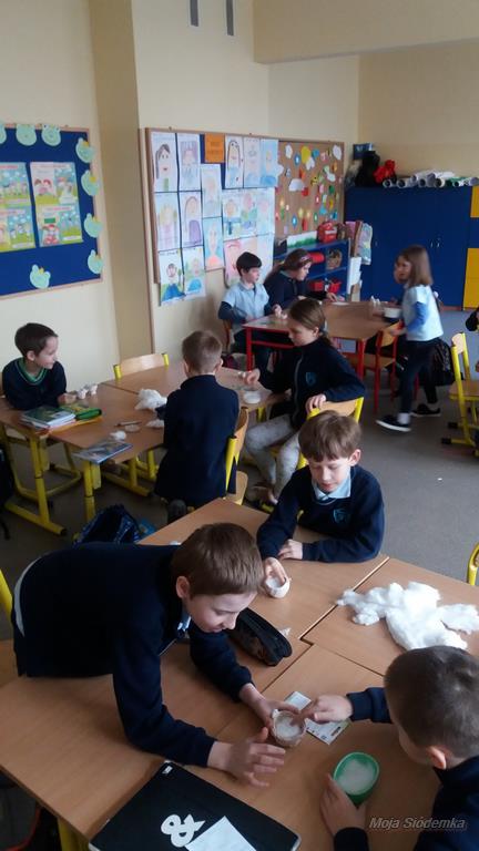 W Glinianej Kuli ulepili miseczki. Pewnego dnia wykorzystali swoje prace do posiania rzeżuchy. Siewy wykonali tradycyjną metodą „na watę” 🙂 . Każdy starannie wypełnił nią swoje naczynie, polał wodą i precyzyjnie posypał pachnącymi ziarenkami.