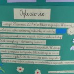 Drugoklasiści z niepokojem porozwieszali ogłoszenia z dokładnym opisem poszukiwanej pory roku. Czyżby bali się, że zapomni o nas Wskazówką dla poszukiwaczy wiosny były charakterystyczne elementy jej stroju – zieleń, kwiaty oraz zapach rozgrzanej słońcem ziemi. Jak na ogłoszenie przystało, wszystkim znalazcom została obiecana nagroda w postaci długich, ciepłych dni i śpiewu ptaków.