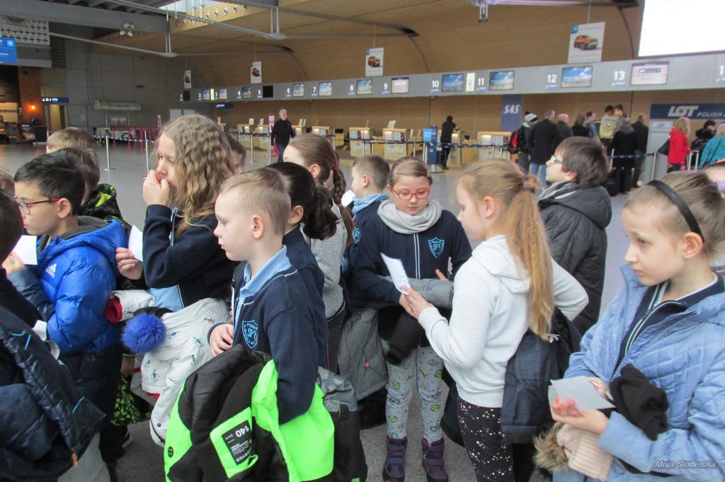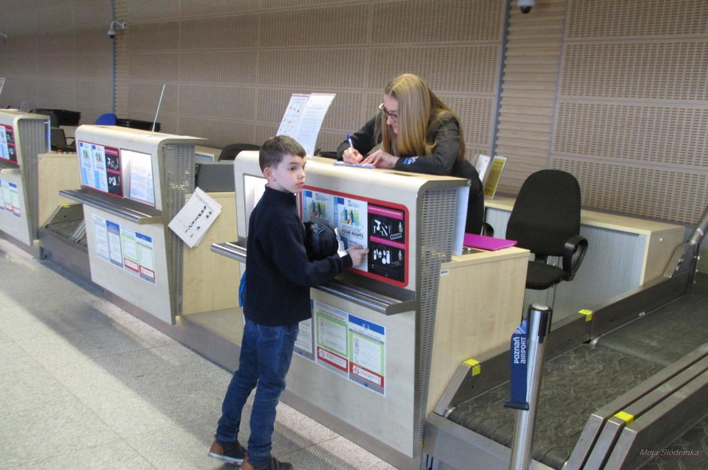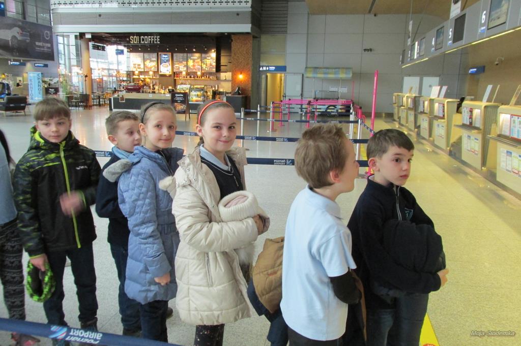 Przeszliśmy całą ścieżkę pasażera. Dowiedzieliśmy się co to jest check-in. Zwiedziliśmy terminal pasażerski. Otrzymaliśmy karty pokładowe przy stanowisku check-in. Zapoznaliśmy się z zasadami obowiązującymi podczas kontroli. Dowiedzieliśmy się jakie bagaże możemy zabrać. Przeszliśmy przez kontrolę bezpieczeństwa do hali odlotów. Mogliśmy także zwiedzić salon Buisness Executive Lounge. Przeszliśmy do hali przylotów i tam obserwowaliśmy wydawanie walizek. Z tarasu widokowego podziwialiśmy przyloty i odloty samolotów. Nawet pan Pilot do nas serdecznie pomachał.