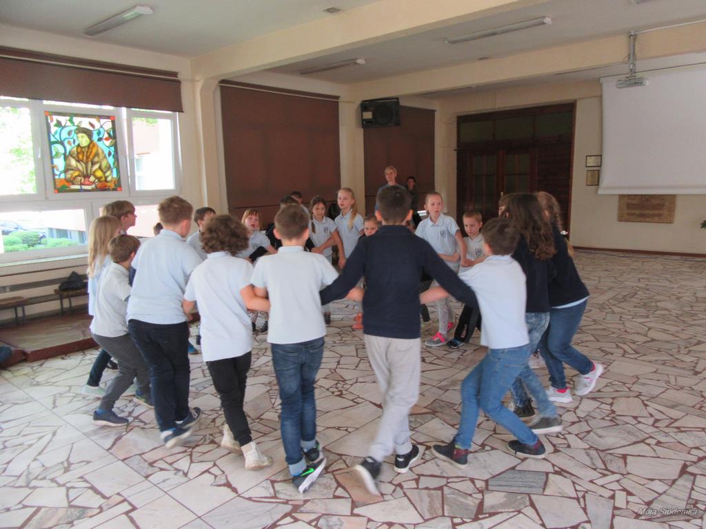 W dniu 25 kwietnia 2018 roku uczniowie z klas I-III świętowali Międzynarodowy Dzień Tańca Integracyjnego. Na początku spotkania dzieci szukały odpowiedzi na pytanie Dlaczego ludzie tańczą