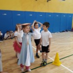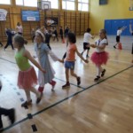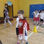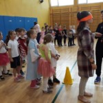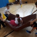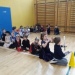 Rywalizacja rozpoczęła się trudnym zadaniem, w którym młode damy musiały z gracją pokonać odcinek drogi , nie pozwalając spaść umieszczonej na głowie książce, a dzielni rycerze asekurowali je i służyli pomocą. Dużo śmiechu i radości wywołał konkurs przewożenia dam w karecie. W jej rolę wcielił się materac, na którym młode dziewczyny zostały niesione przez czterech śmiałków. Rycerze musieli wykazać się doskonałą koordynacją wzrokowo-ruchową i celnie trafić do piramidek z puszek. Zaufanie to podstawa każdej relacji, więc nasze damy dworu pozwoliły bez obaw poprowadzić się z zasłoniętymi oczami torem pełnym przeszkód i niespodzianek, a młodzieńcy dbali o ich pełne bezpieczeństwo. Wszyscy doskonale wywiązali się ze swoich zadań, a przy tym wspaniale bawili.
