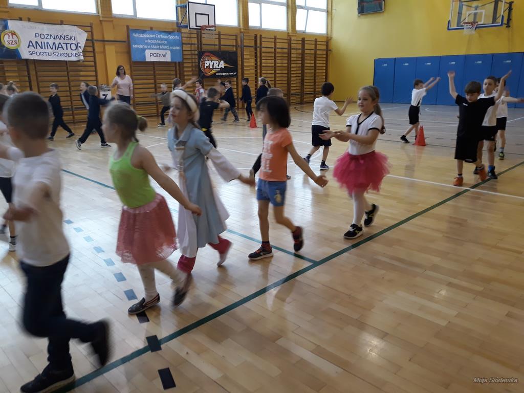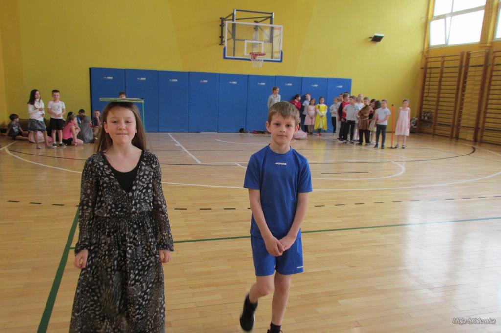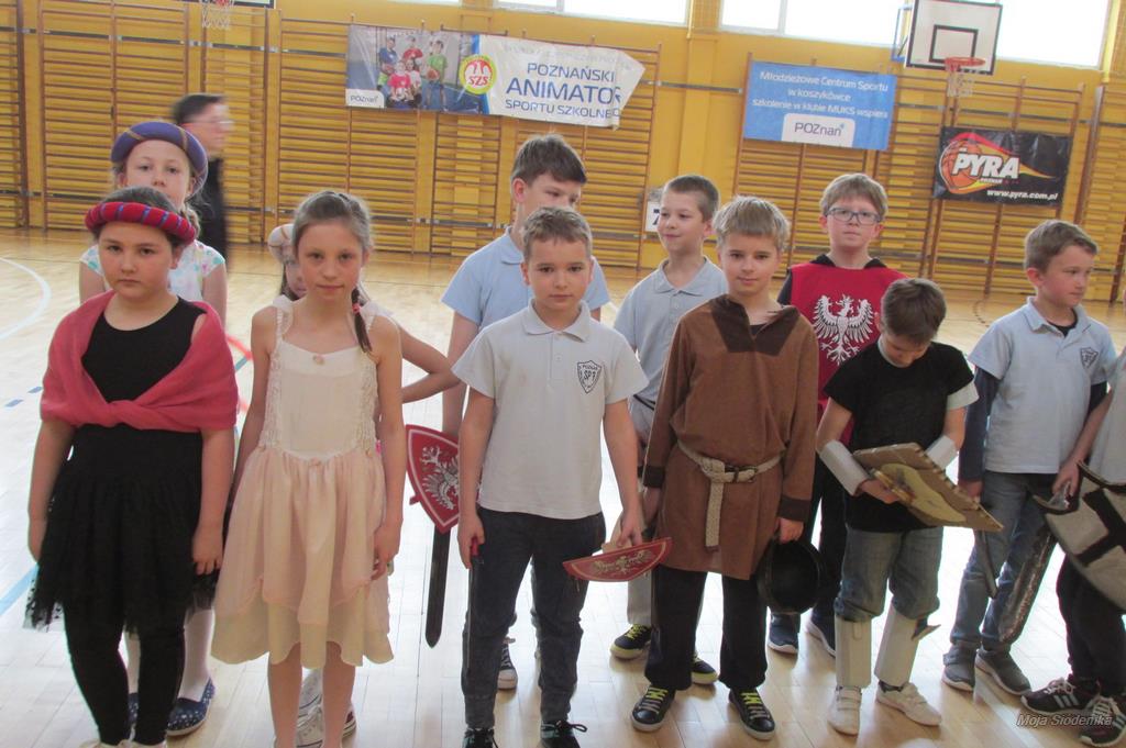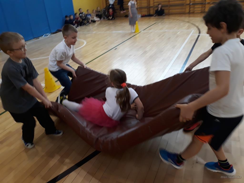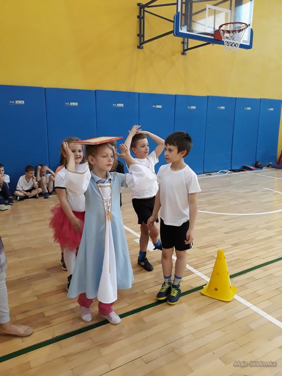 Rywalizacja rozpoczęła się trudnym zadaniem, w którym młode damy musiały z gracją pokonać odcinek drogi , nie pozwalając spaść umieszczonej na głowie książce, a dzielni rycerze asekurowali je i służyli pomocą. Dużo śmiechu i radości wywołał konkurs przewożenia dam w karecie. W jej rolę wcielił się materac, na którym młode dziewczyny zostały niesione przez czterech śmiałków. Rycerze musieli wykazać się doskonałą koordynacją wzrokowo-ruchową i celnie trafić do piramidek z puszek. Zaufanie to podstawa każdej relacji, więc nasze damy dworu pozwoliły bez obaw poprowadzić się z zasłoniętymi oczami torem pełnym przeszkód i niespodzianek, a młodzieńcy dbali o ich pełne bezpieczeństwo. Wszyscy doskonale wywiązali się ze swoich zadań, a przy tym wspaniale bawili.