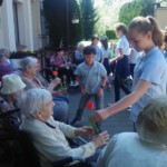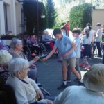 W piątek 20 kwietnia odwiedziliśmy Seniorki z DPS przy ul. Sielskiej. Nasze Panie zwykle oczekują nas w świetlicy, a tym razem korzystając z pięknej pogody, oczekiwały na placu przed domem…