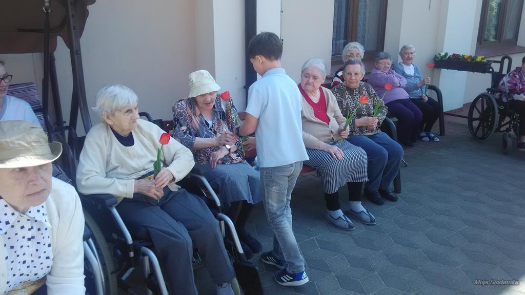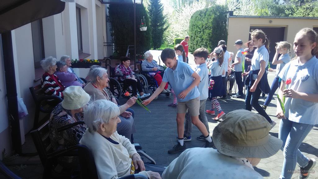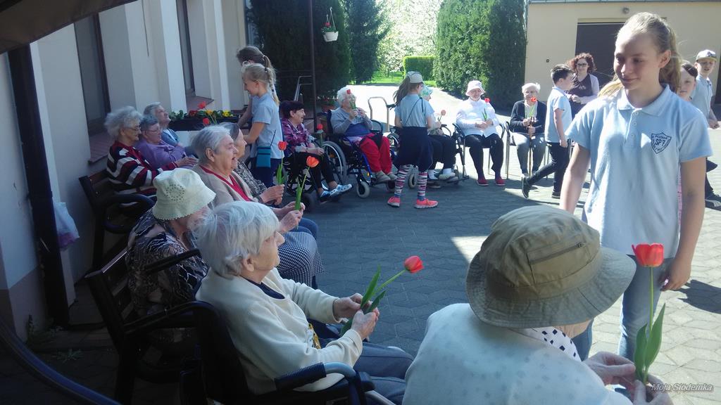 W piątek 20 kwietnia odwiedziliśmy Seniorki z DPS przy ul. Sielskiej. Nasze Panie zwykle oczekują nas w świetlicy, a tym razem korzystając z pięknej pogody, oczekiwały na placu przed domem…