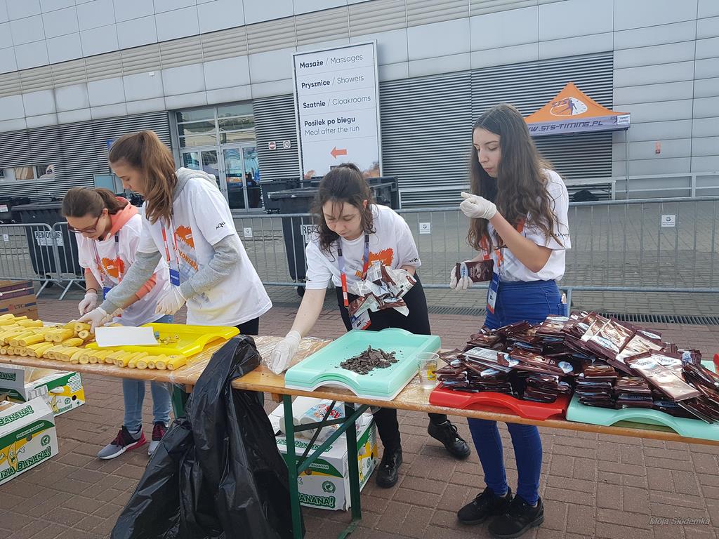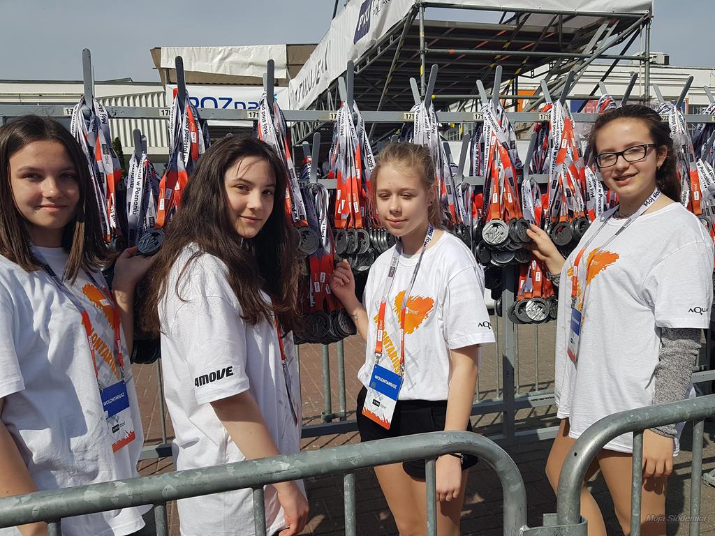 Wielkie wydarzenie i wielka nasza duma z 34 wolontariuszy Siódemki, którzy 14 kwietnia odbyli szkolenie, a 15 kwietnia pracowali w obsłudze punktu żywieniowego z wodą, owocami i izotonikami na mecie półmaratonu, przy wsparciu nauczycieli: p. Katarzyny Brzezińskiej, p. Magdaleny Świgoń i p. Magdaleny  Warzybok.