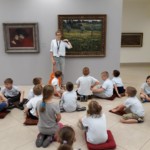 W czasie wizyty mieliśmy do wykonania wiele ciekawych zadań, np.: znaleźć w galerii obrazy, których zdjęcie pokazała nam pani przewodnik, uzupełnić wybranymi elementami obraz martwą naturę, przyjąć postawę, w jakiej został sportretowany król Stanisław August Poniatowski. Na koniec każdy z nas stworzył własne wybrane dzieło przy użyciu kredek i pasteli.